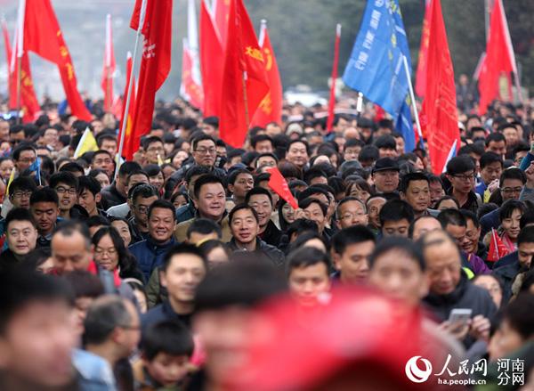 上午9:30,随着发令枪响,参加活动人员从鸡公山风景区大门停车场出发,经登山古道上鸡公山,再徒步至报晓峰广场,全程约5公里。活动结束后,在2个小时内登山到达指定地点的人员可以获得完成活动证书及波尔登森林公园免费门票一张。同时,大家还可以免费游览鸡公山风景区及周边景区。此次活动旨在“让新年登高成为中华民族的传统,让登高健身成为全国人民的习惯”,营造“新年新气象、人人步步高,百万民众登高迎新年”的喜迎气氛。活动的主题是“登高健身、喜迎新年;全民健身、幸福中原;魅力信阳、运动之城”。