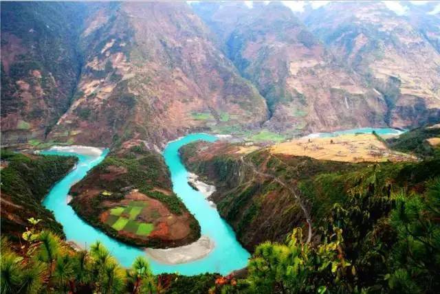 怒江流经云南贡山县丙中洛乡日丹村附近时水流由西向东急转,形成了一个半圆形大湾,就是怒江第一湾,弯上的小平原有村庄,处处都是田园风光,让人向往。