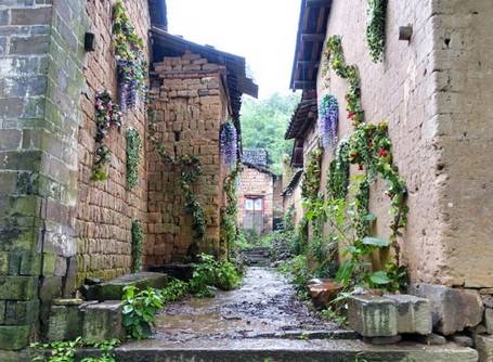 西河村地处河南省信阳市新县境内,该村依河而建,山环水抱。