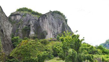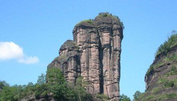 它雄踞九曲溪口北面,是进入九曲溪的第一峰。大王峰海拔530米,上丰下敛,气势磅礴,远远望去,宛如擎天巨柱,在武夷三十六峰中,向有“仙壑王”之称。