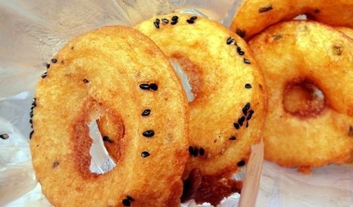 欢喜坨乃“中国名点”,是早点的一种,糯米粉滚成圆团,再裹上一层芝麻,炸熟后外脆内软,金灿灿的,咬一口糖汁四溢。最好在趁热的时候吃。很多老武汉对它有着难以割舍的情怀。