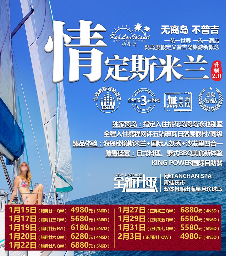 【春节】【墅说斯米兰】普吉岛、斯米兰岛 5晚6天,独家桃花岛,双体帆船